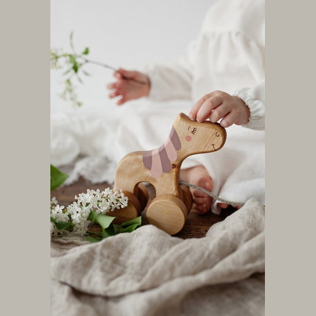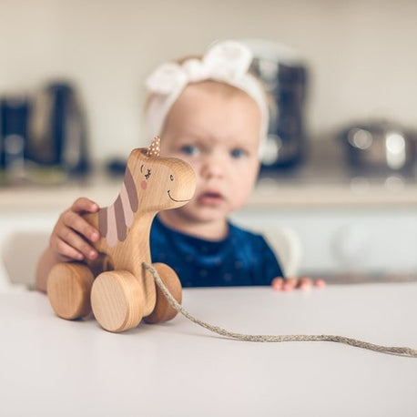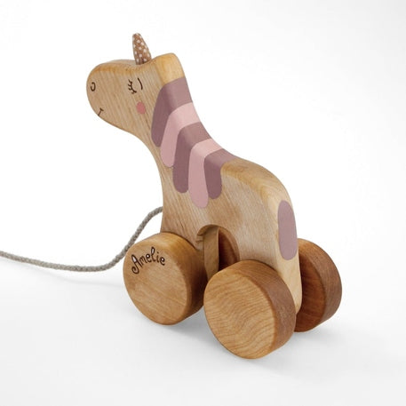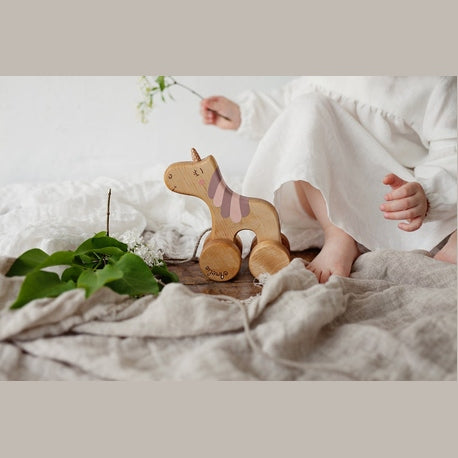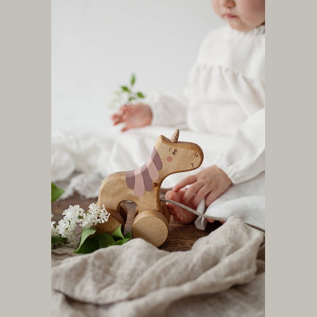 Meiliai rankų darbo iš natūralių medžiagų pagamintas traukiamas žaislinis vienaragis yra saugus, patvarus ir spalvingas jūsų mažylio draugas. Klasikinis ir nesenstantis – šis mažas medinis bičiulis taps puikiu bet kurios vaiko žaislų kolekcijos papildymu. Ir ar minėjome, kad jis rieda kaip ant sviesto? Galite netgi padaryti jį dar ypatingesnį su asmeniniu užrašu!
